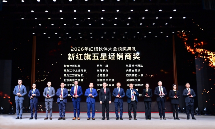 劉亦功在致辭中表示,2026年紅旗品牌將持續(xù)深化廠商協(xié)同,全力為紅旗伙伴賦能增效,聚力突破55萬輛。希望紅旗伙伴激昂斗志,與紅旗品牌同心同向、攜手共進(jìn);希望全體營(yíng)銷將士鉚足干勁、接續(xù)奮斗,與紅旗伙伴并肩戰(zhàn)斗,以勇立潮頭、永爭(zhēng)第一的精神風(fēng)貌打贏2026營(yíng)銷攻堅(jiān)戰(zhàn)。