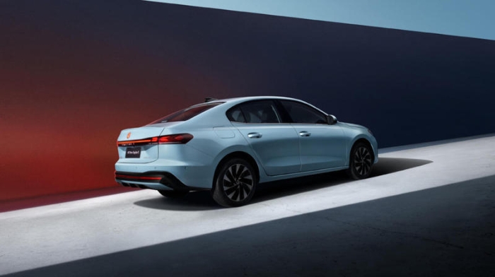 側(cè)面來看,新車側(cè)面造型較為動感,筆直的腰線貫穿車身,看上去十分硬朗。此外,新車采用了傳統(tǒng)的機(jī)械車門把手,并且提供多種樣式輪轂。車尾部分,新車采用貫穿式尾燈組,內(nèi)部獨(dú)特的燈組造型點(diǎn)亮后具有不錯的辨識度。車身尺寸方面,新車長寬高分別為4702/1815/1484mm,軸距2688mm。