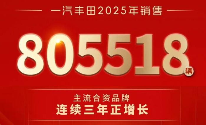 來(lái)源:新華社在汽車(chē)產(chǎn)業(yè)進(jìn)入深度調(diào)整期、新能源與智能化浪潮奔涌向前的背景下,2025年一汽豐田展現(xiàn)出極強(qiáng)的戰(zhàn)略定力與進(jìn)化能力,全年新車(chē)銷(xiāo)量達(dá)805518輛,連續(xù)三年實(shí)現(xiàn)銷(xiāo)量正增長(zhǎng),品牌向上、向新的高質(zhì)量發(fā)展態(tài)勢(shì)愈發(fā)穩(wěn)健。