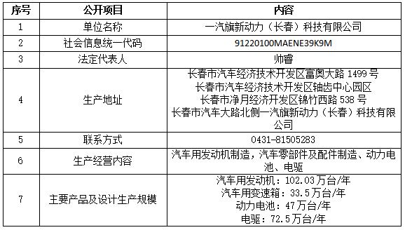 一汽旗新動(dòng)力(長(zhǎng)春)科技有限公司境影響評(píng)價(jià)批復(fù)信息詳見表7。