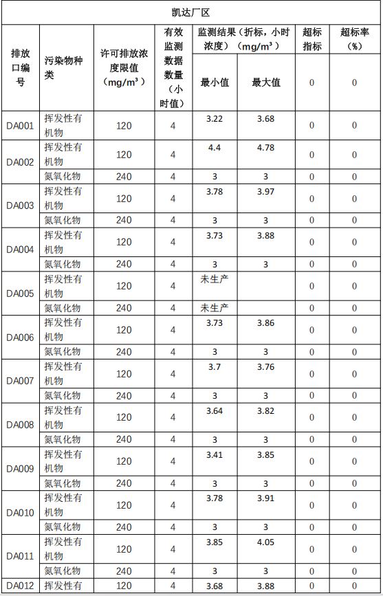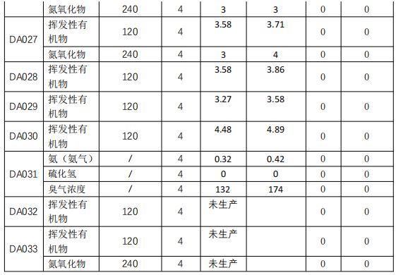 主要污染物排放濃度情況詳見表3至表6。