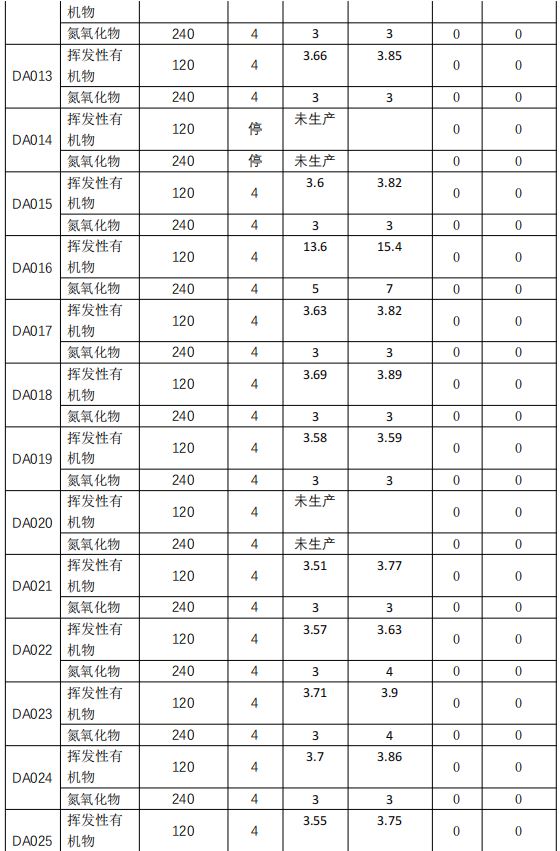 備注:凈月廠區(qū)二季度無(wú)夜間生產(chǎn),四季度無(wú)生產(chǎn)。
