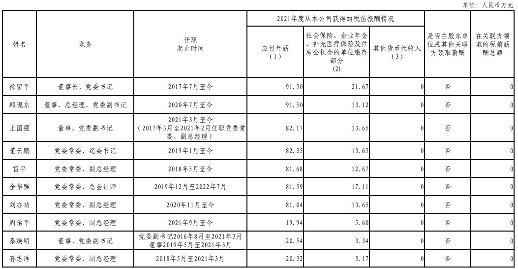上表披露信息為我公司企業(yè)負(fù)責(zé)人2021年度全部應(yīng)發(fā)稅前薪酬(不含2021年發(fā)放的以往年度薪酬),按國家規(guī)定由單位繳存各種社會保險等。其中,第(1)項由國務(wù)院國資委核定。