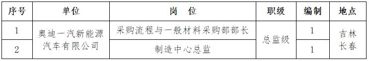 根據(jù)工作需要,現(xiàn)對(duì)奧迪一汽新能源汽車有限公司部分高級(jí)經(jīng)理崗位面向社會(huì)公開招聘,具體內(nèi)容如下: