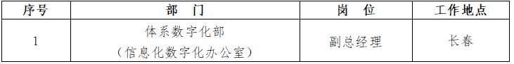 根據(jù)工作需要,現(xiàn)對體系數(shù)字化部(信息化數(shù)字化辦公室)副總經(jīng)理崗位面向社會公開招聘,具體內(nèi)容如下: