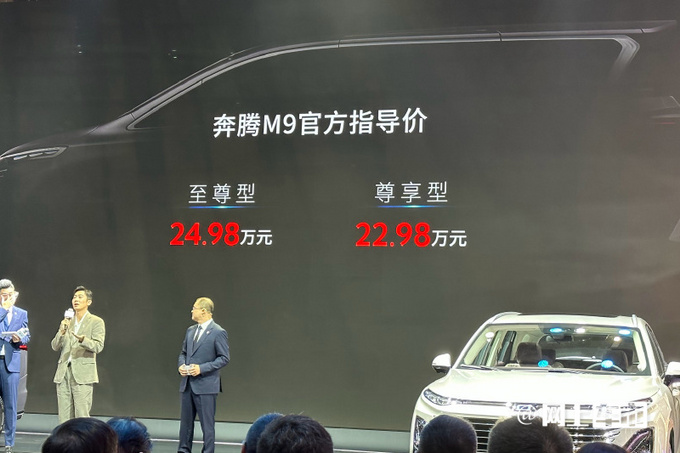 4月18日,一汽奔騰首款中大型MPV——M9在上海車展正式上市,2款車型指導(dǎo)價區(qū)間分別為22.98萬元和24.98萬元,起售價較預(yù)售價下調(diào)6000元。新車搭載2.0T+48V輕混系統(tǒng),百公里油耗8.8L。
