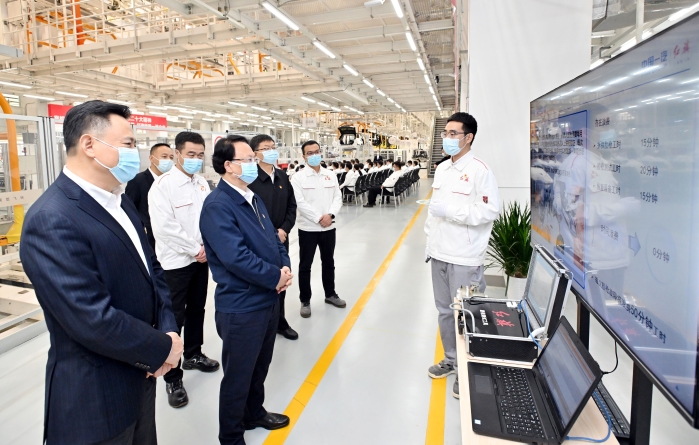 在紅旗長青工廠總裝車間,景俊海向一線職工代表宣講黨的二十大精神。景俊海指出,黨的二十大對全面建設(shè)社會主義現(xiàn)代化國家、全面推進中華民族偉大復興進行了戰(zhàn)略謀劃,為新時代黨和國家事業(yè)發(fā)展、實現(xiàn)第二個百年奮斗目標指明了前進方向、提供了根本遵循。黨的二十屆一中全會產(chǎn)生了新一屆中央領(lǐng)導機構(gòu),習近平同志繼續(xù)擔任中共中央總書記、中央軍委主席,充分體現(xiàn)了全黨全軍全國各族人民的共同意志和心聲期盼。面對世界百年未有之大變局,有習近平總書記作為黨的核心、人民領(lǐng)袖、軍隊統(tǒng)帥掌舵領(lǐng)航,是黨之大幸、國之大幸、民之大幸。我們一定要深刻領(lǐng)悟“兩個確立”的決定性意義,增強“四個意識”、堅定“四個自信”、做到“兩個維護”,緊跟習近平總書記走好新的趕考之路、奪取新的偉大勝利。景俊海強調(diào),黨的二十大報告對發(fā)展制造業(yè)提出了一系列新目標、新要求、新舉措,為汽車產(chǎn)業(yè)發(fā)展提供了廣闊空間。希望一汽搶抓機遇、乘勢而上,緊跟汽車產(chǎn)業(yè)發(fā)展電動化、智能化、網(wǎng)聯(lián)化、共享化趨勢,以高水平科技自立自強驅(qū)動企業(yè)高質(zhì)量發(fā)展。