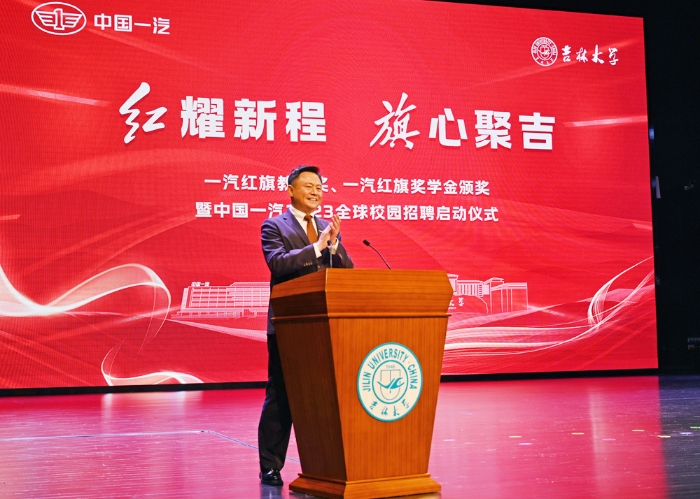 儀式上,集團公司董事長、黨委書記徐留平致辭,宣布中國一汽2023全球校園招聘啟動。吉林大學黨委書記姜治瑩致辭。出席儀式的領導為一汽紅旗教師獎、一汽紅旗獎學金獲獎代表頒獎。獲獎師生代表發(fā)言。