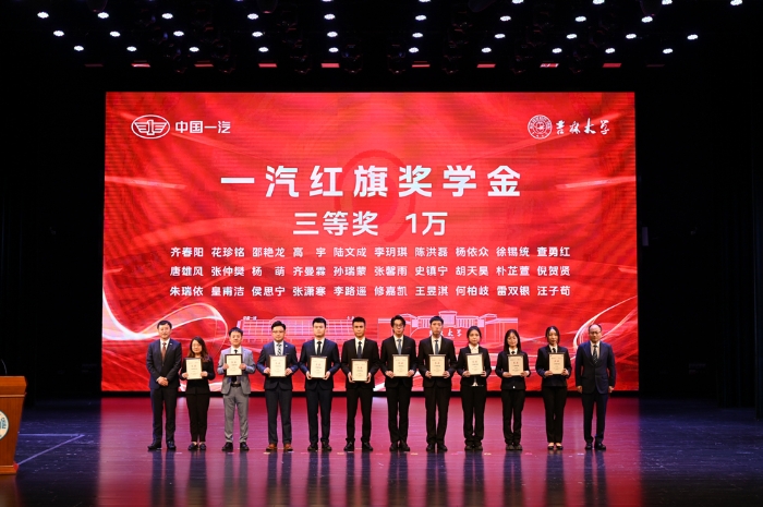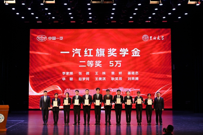 徐留平在致辭中表示,設立一汽紅旗教師獎、一汽紅旗獎學金,是中國一汽落實中央人才強國戰(zhàn)略,助力吉林大學教書育人,積極履行社會責任的重要舉措。面向未來,中國一汽將持續(xù)深化與吉林大學戰(zhàn)略合作,不斷做好獎教獎學工作,大力支持廣大青年教師和優(yōu)秀學子服務國家社會、書寫精彩人生。真誠歡迎胸懷赤子之心、摯愛汽車事業(yè)、情系民族品牌的優(yōu)秀學子,投身到中國一汽創(chuàng)新發(fā)展的宏大實踐中來,共同為打造世界一流汽車企業(yè)、強大中國汽車產(chǎn)業(yè)、全面建設社會主義現(xiàn)代化國家貢獻智慧和力量。